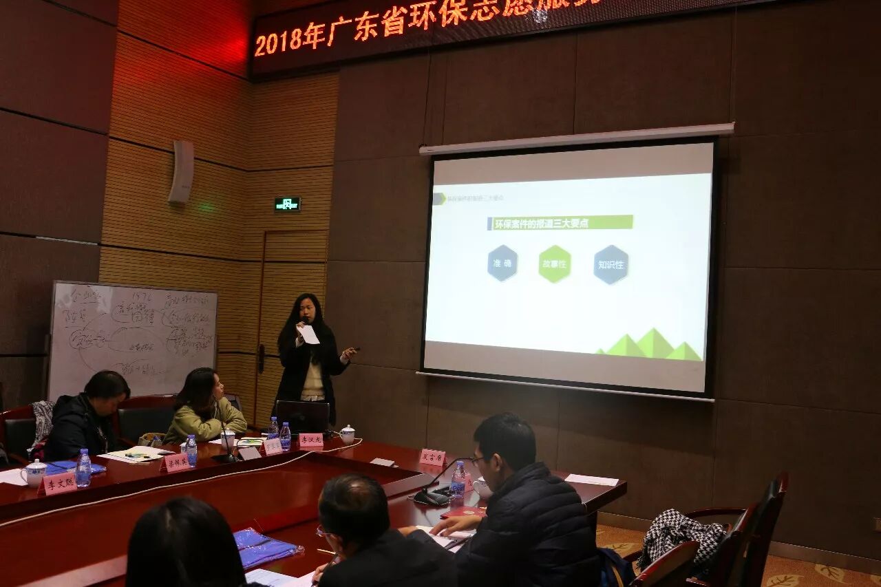 ▲深圳市绿源环保志愿者协会秘书长朱珠? 上演示课“环保志愿者发展培训”