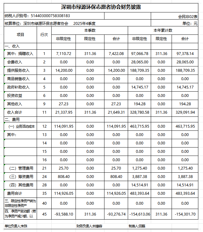 本季度财务收支严格遵循合规透明原则,重点围绕环保公益项目实施、志愿者培训开展。主要支出包括:活动物料采购(废旧手作材料、科普绘本、生态拼图等)、培训场地租赁及讲师补贴、宣传推广费用等。具体收支明细将按规定在协会官网及相关监管平台公开披露,确保每一笔资金均用于生态保护与公益服务相关工作,接受社会各界监督。