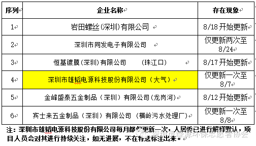 1、根据《国家重点监控企业自行监测及信息公开办法》的规定,手工监测数据应于每次监测完成后的次日公布,自动监测是每2个小时更新一次。但是很多企业没有做到及时更新监测数据,部分企业都是隔几天集中上传,存在企业差不多每周才上传一次和前半个月都不更新的现象,甚至是一个月才更新一次的现象。以下为相关企业名单: